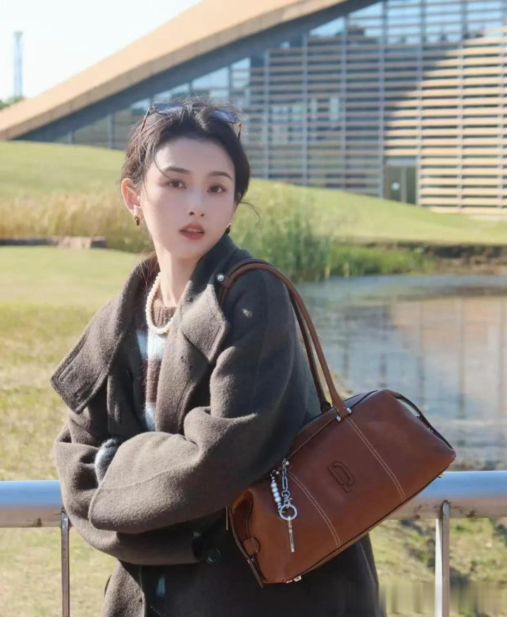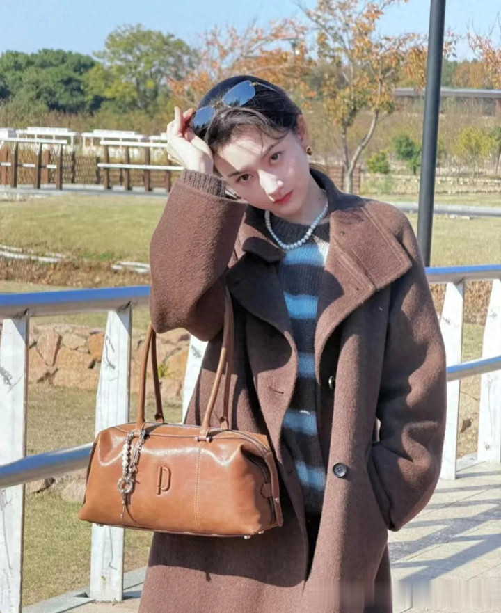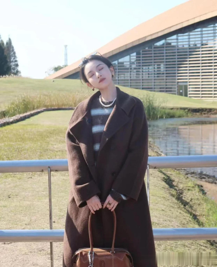 宋祖儿私服穿搭真时髦! 焦糖棕大衣+条纹毛衣, 高级又洋气!